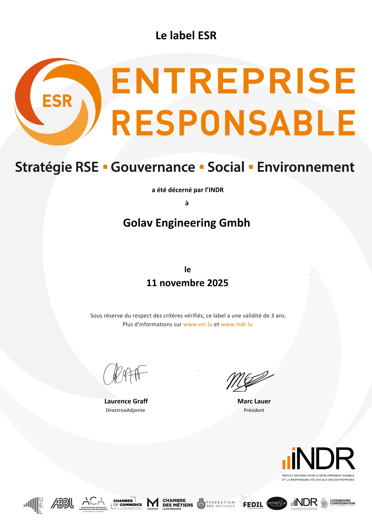 Nachdem das Unternehmen 2019 zum vierten Mal die Auszeichnung „ESR Entreprise Socialement Responsable“ (sozial verantwortlich handelndes Unternehmen) erhielt, wurde Goblet Lavandier & Associés Ende desselben Jahres Mitglied luxemburgischen Berufsverband Pro RSE.